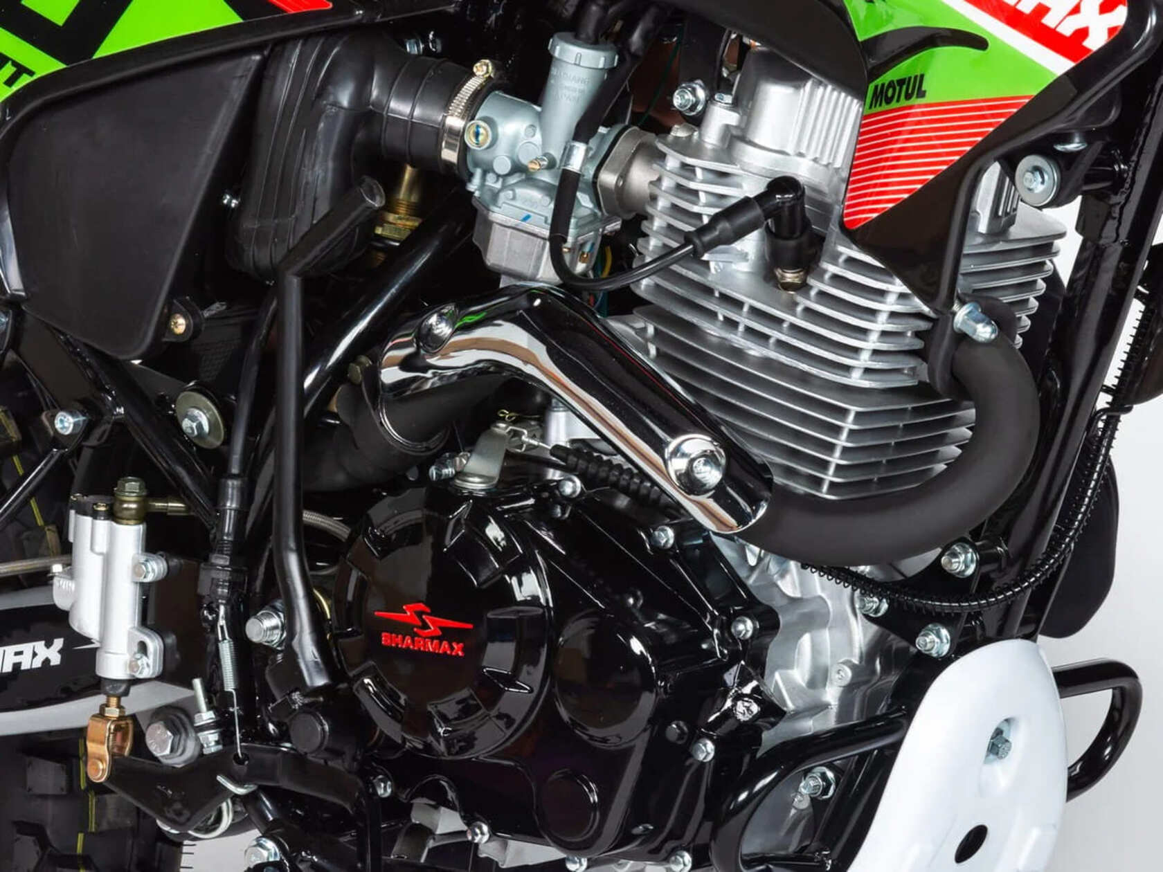 Sharmax Sport 240 — мощный, быстрый, выносливый мотоцикл, который буквально соткан из преимуществ. Этот байк ориентирован на эффективную спортивную езду, будь то каменистые обрывы, скалы, вязкие дороги или асфальтированные треки. Надёжный двигатель, сбалансированная подвеска и “злой” рисунок резины делают конструкцию мотоцикла идеальной для внедорожных гонок.РамаДуплексная рама сделана из хроммолибденового сплава, благодаря которому унаследовала одновременно прочность и лёгкость. Не боится жёстких падений и переворотов. Прочувствуйте каждое движение вашего байка, став с ним одним целым.Двигатель На раме расположился сбалансированный двигатель от легендарного производителя Zongshen — 163fml. Рабочий объём — 200куб. см и 13 л. с. для быстрого старта и непревзойдённых результатов в эндуро гонках. Компактный, надёжный и непривередливый в эксплуатации двигатель в паре с 5-ступенчатой коробкой передач обеспечит максимальную уверенность райдеру с любым уровнем подготовки.Передняя подвескаВилка перевёрнутого типа, диаметром в 37 мм и длиной 840 мм, имеет жёсткую конструкцию и отличается эффективной управляемостью. Может похвастаться более продуктивной обратной связью с дорогой по сравнению с телескопической вилкой. Больше уверенности — больше удовольствия от поездки!Задняя подвескаЗадняя подвеска представлена моноамортизатором с регулировкой преднатяга пружины и возможностью регулировки седла по высоте. Прогрессия даёт преимущество при прыжках и езде по мелким неровностям. Стальной маятник изготовлен из надёжного хроммолибденового сплава.ОхлаждениеSharmax Sport 240 оборудован системой воздушного охлаждения. Нет громоздкого радиатора, вес байка стал меньше, управляемость — лучше. Просто нажмите на газ — и вперёд! За температуру не переживайте — не перегреетесь.РульСтатус самого управляемого байка подтверждает эргономичный конический руль двойного сечения. Материал — высокопрочный алюминий. Грипсы мягкие и не скользят, защита для рук выдержит сотни падений. Подножки/сиденьеОснащён удобными подножки для пассажира и эргономичным сиденьем для комфортного преодоления бездорожья. ДизайнЧёткие аэродинамические линии подчёркивают спортивный характер мотоцикла. Яркая светодиодная оптика добавляет дизайну эстетику и эксклюзивную статусность. С таким байком вы станете самым заметным на треке!
