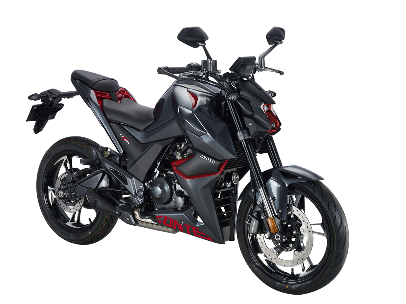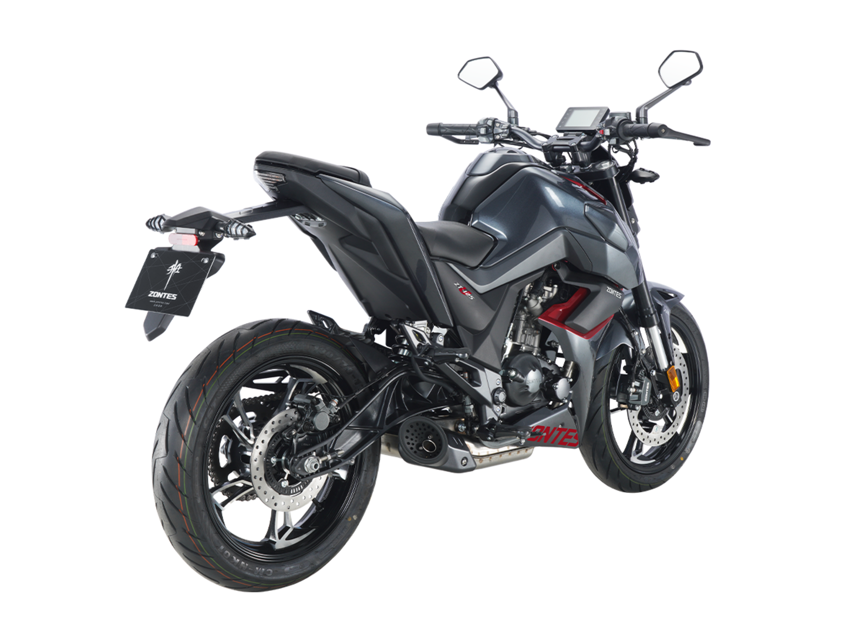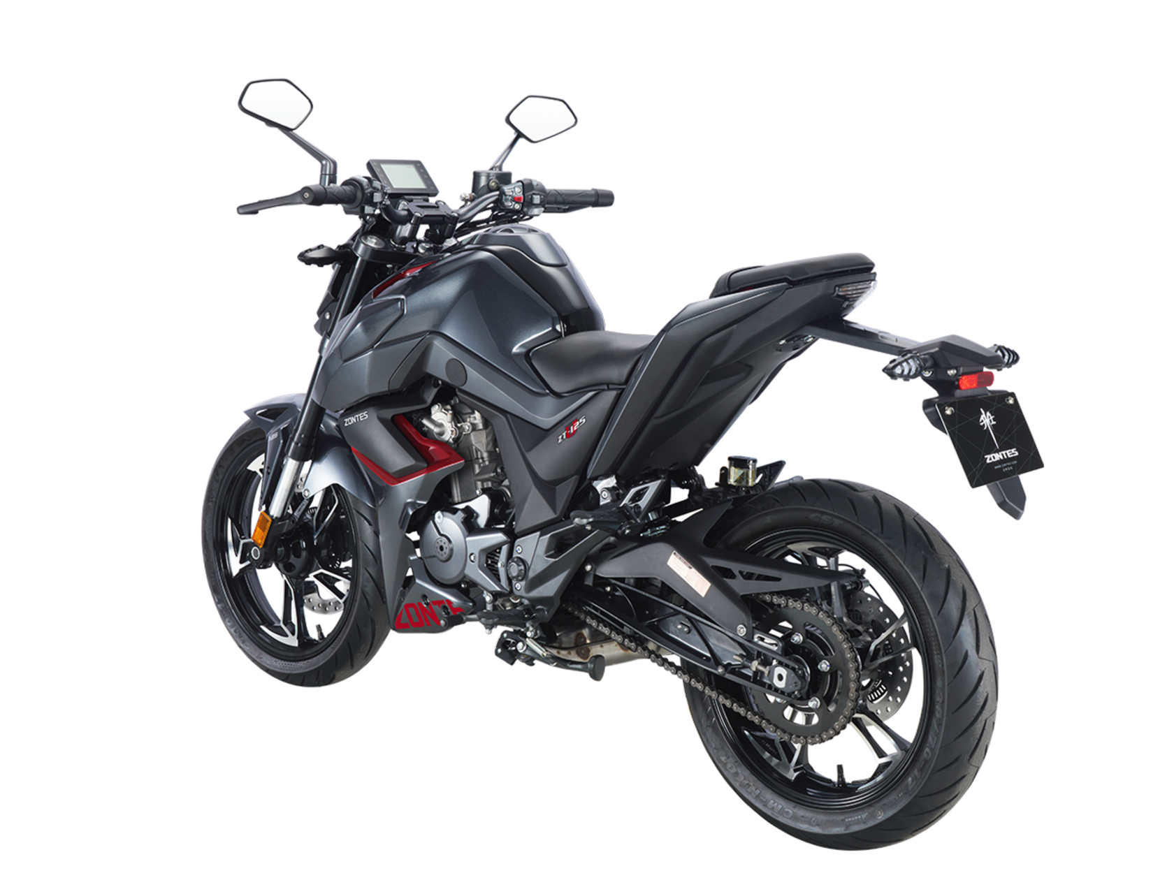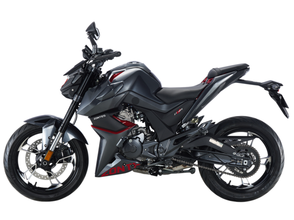 Мотоцикл ZONTES ZT125-U – лёгкий нейкед со стремительным и современным дизайном. Хорошо подходит как для поездок в городской среде и маневрирования в межрядье.Силовая установка представлена одноцилиндровым 4-тактным двигателем ZT152MI с 4 клапанами и 2 верхними распредвалами. Двигатель имеет объём 125 см³ и обеспечивает мощность в 15 л.с. Оснащён инжектором BOSCH и системой жидкостного охлаждения. Механическая коробка передач имеет 6 ступеней и схему 1-N-2-3-4-5-6.Объём топливного бака 12 литров.Колёса выполнены из литого алюминия и имеют диаметр 17 дюймов. Для подвески спереди используется классическая телескопическая вилка, сзади – моноамортизатор. Для торможения установлена дисковая гидравлическая система.В конструкции мотоцикла используется пространственная трубчатая рама из стали. Минималистичная выпускная система также выполнена из нержавеющей стали. Для освещения используется яркая LED-оптика, а приборная панель представлена цифровым дисплеем. Рычаги тормоза и сцепления оснащены защитными скобами.Габариты мотоцикла 2000х845х1105 мм. Колёсная база 1355 мм. Высота по седлу 790 мм. Вес 140 кг..