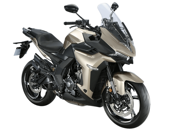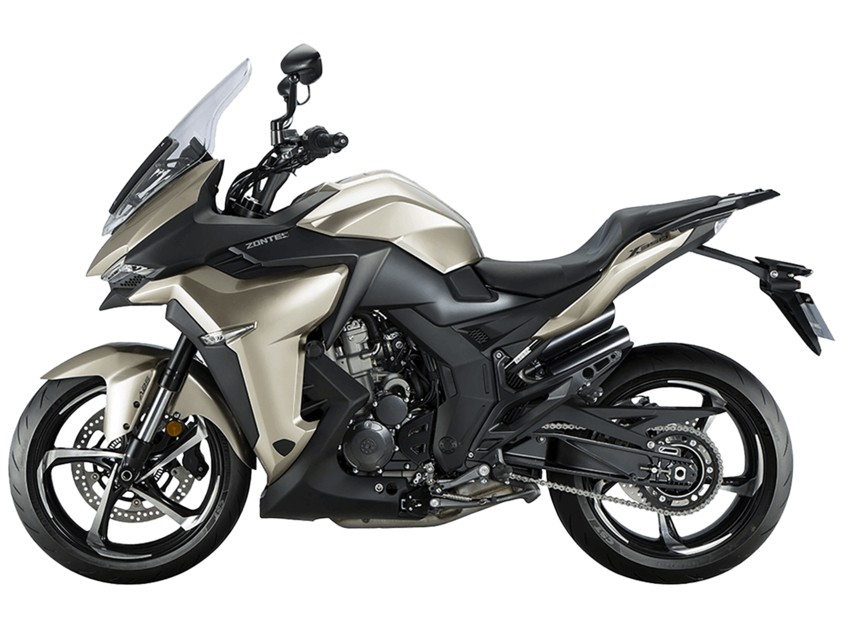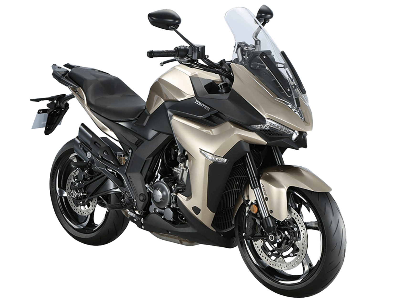 Мотоцикл ZONTES ZT350-X – турист со стремительным современным дизайном. Хорошо подходит как для повседневных поездок по городу, так и для покорения дальних маршрутов.Силовая установка представлена одноцилиндровым 4-тактным двигателем ZT184MP с 4 клапанами и 2 верхними распредвалами. Двигатель имеет объём 348 см³ и обеспечивает мощность в 39 л.с. Оснащён инжектором BOSCH и системой жидкостного охлаждения. Механическая коробка передач имеет 6 ступеней и схему 1-N-2-3-4-5-6. Запуск двигателя осуществляется с помощью бесключевого доступа.Ёмкость топливного бака 19 литров.Колёса представлены литыми алюминиевыми дисками диаметром 17 дюймов. На мотоцикл установлены датчики давления в шинах, показатели от которых выводятся на приборную панель. Для подвески спереди используется телескопическая вилка, сзади – моноамортизатор. Гидравлические дисковые тормоза произведены испанской компанией J.JUAN, входящей в холдинг BREMBO.Для освещения используется яркая LED-оптика, а приборная панель представлена цифровым дисплеем. Имеется 2 USB-порта.Габариты мотоцикла 2055х795х1330 мм. Колёсная база 1380 мм. Высота по седлу 795 мм. Вес 169 кг.