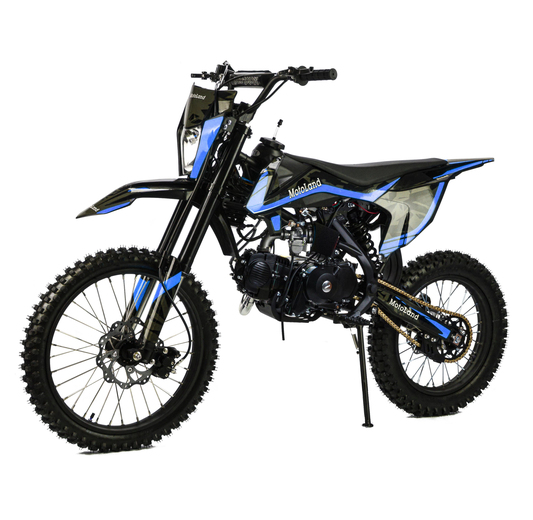 1Встречайте долгожданную новинку на 150 куб. Питбайк Motoland GF 150 E идеален для поездок по грунтовым дорогам и бездорожью. Хорошо чувствует себя на мягком и среднем грунте, разгоняется до 90 км/ч. Оснащён спортивными траверсами и амортизаторами с регулировкой. весит всего 75 кг.Питбайк прост в управлении и не требует специального ухода, подойдёт как новичкам, так и любителям мотокросса.У питбайка отличный узнаваемый дизайн. Конструкция подчёркивает неуступчивый спортивный характер, который не остановится ни перед одним препятствием.Комбинированный прочный пластик не ломается при сгибании.Передняя подвеска — телескопическая вилка перевёрнутого типа с регулировками, которая отлично подходит для преодоления ям, и других неровностей плохих дорог или их отсутствия. Задняя подвеска маятниковая с моноамортизатором тоже с регулировкой.Питбайк оснащён карбюратором PZ 22 и одноцилиндровым четырёхтактным двигателем с воздушно-масляным охлаждением. Надёжный мотор 1P57YMJ с электростартером, мощностью 11 л. с. и объемом 150 см³ , установленный на усиленной стальной раме, коробка передач механическая, четырёхступенчатая.Отличная тормозная система: передний тормозной суппорт двухпоршневой, задний — однопоршневой. Ступицы алюминиевые, обода, маятник и звезды стальные, цепь 428H, усиленная, руль оснащен "подушкой" и установлен счетчик моточасов. Сиденье выполнено с противоскользящим покрытием. На главном тормозном цилиндре и выхлопной системе установлена защита из нержавеющей стали. В фаре установлена линзованная светодиодная лампа.