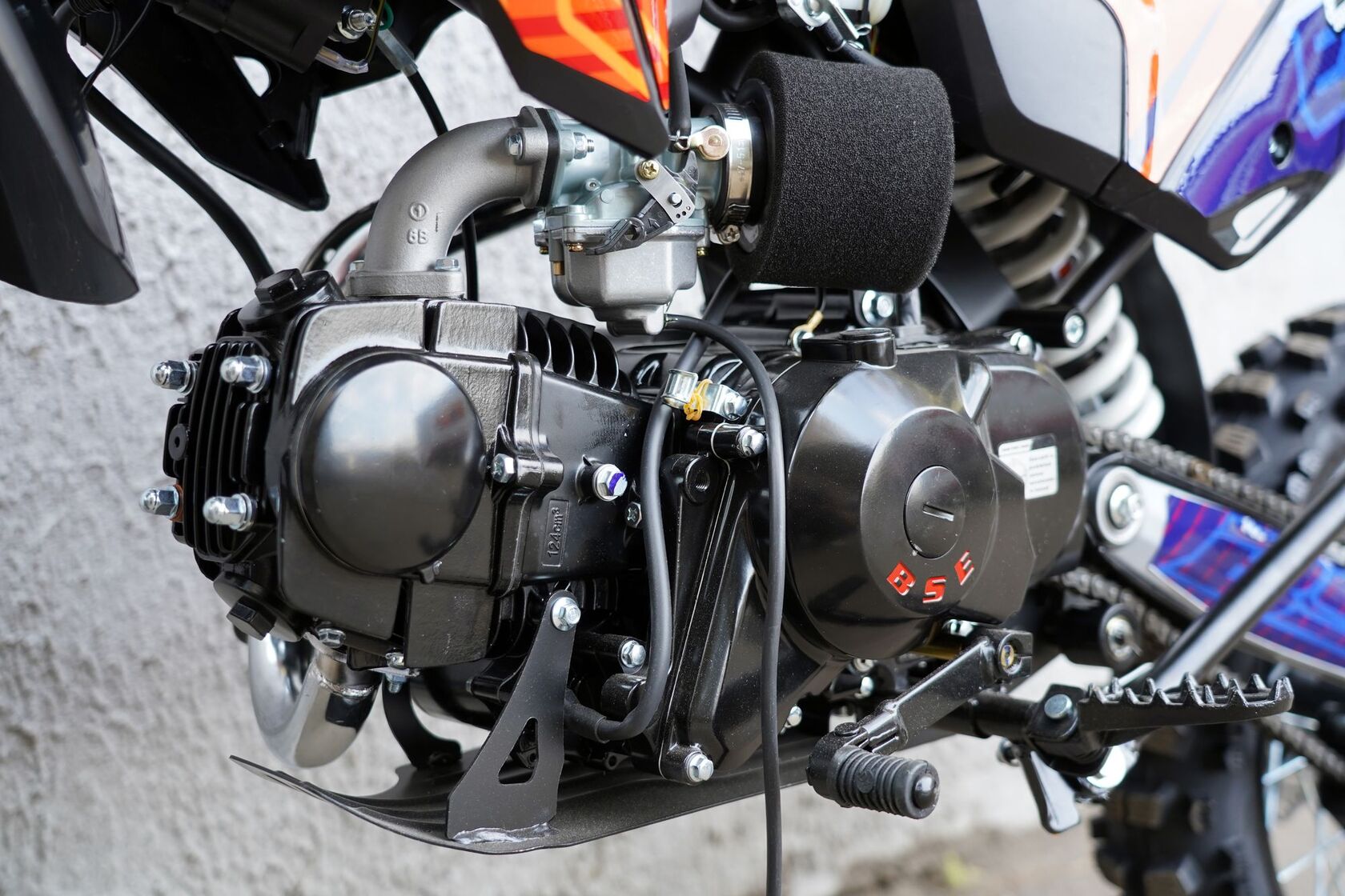 EX125 - лидер в классе питбайки 125сс!Постигай новые границы вместе с BSE EX125!EX125 - лидер в классе питбайки 125сс! Построен на шасси проверенного и надежного DX125 и оснащен самым необходимым для активного катания: мощный 4-х тактный двигатель Zonghshen 125 куб см с воздушным охлаждением, прочная стальная рама, электростартер и диодная фара головного света! Карбюратор Jingke PZ 26 прост в настройке и обслуживании. Энергоемкая подвеска справляется с любыми неровностями. Мощная гидравлическая тормозная система для эффективного и прогнозируемого торможения. Яркий и современный.