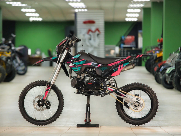 Питбайк BSE PH 150 19/16 AK47 Aquamarine (015). Основа PH150 - рама из хромомолибденовой стали повышенной жесткости с литыми усилителями - фирменный знак качества завода BOSUER! Cиловая установка питбайка - надежный и тяговитый 4-тактным двигателем YX объёмом 150 см3 с воздушным охлаждением. Максимальная мощность – внушительные 15 лс. Питает мотор карбюратор MIKUNI VM22. Питбайк оснащен 4-ступенчатой механической трансмиссией. Запуск мотора осуществляется при помощи электростартера или кик-стартера. Подвески с большими ходами: передняя - телескопическая вилка перевёрнуто типа, задняя- моноамортизатор.LED фара головного света, "злая" резина, vощная тормозная система HSK Racing, японские колесные подшипники NTN, защита мотора, руль ProTaper - питбайк полностью укомплектован всем необходимым для покатушек и гонок.PH150 – профессиональный выбор самого продвинутого "питбайкера".