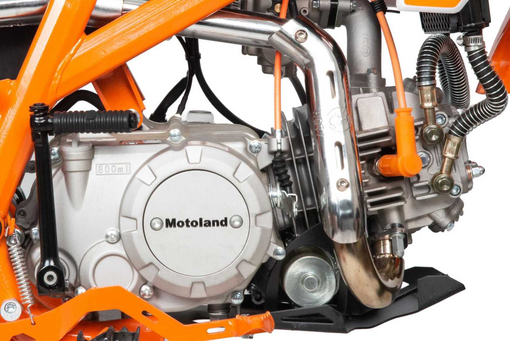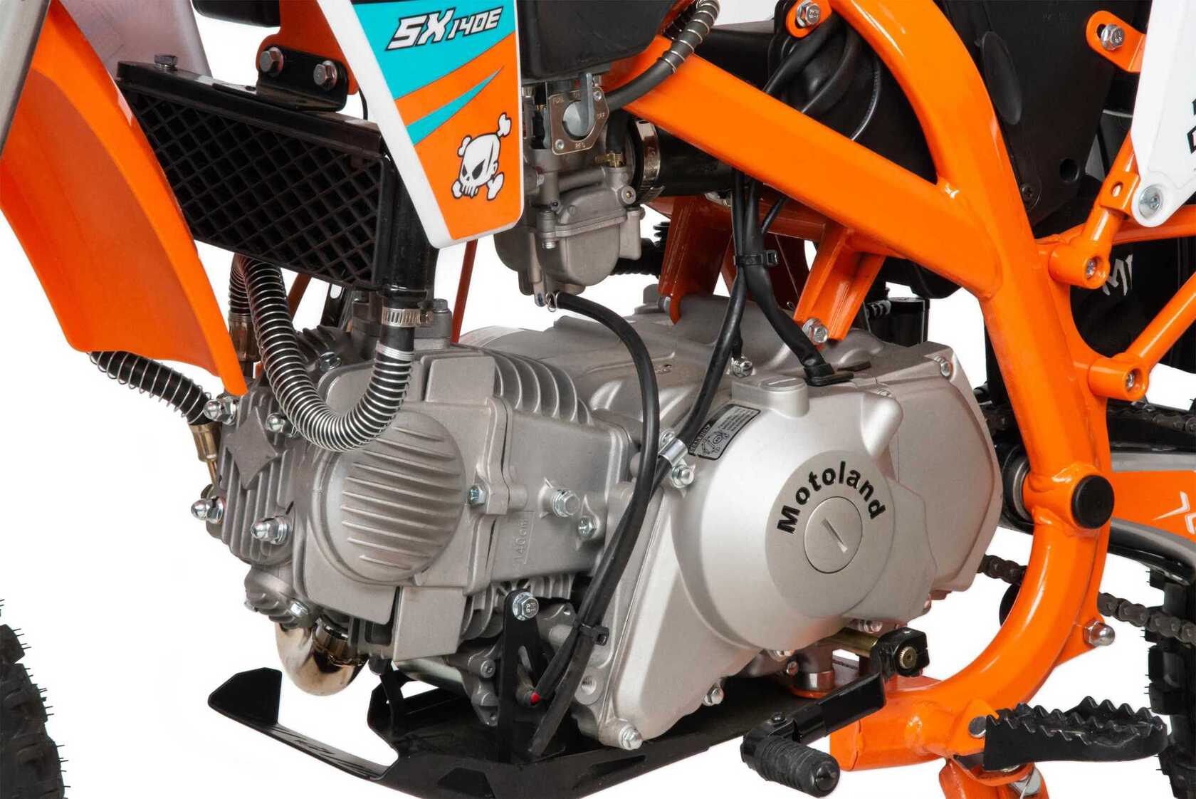 Встречайте долгожданную новинку SX на 140 куб. Питбайк Motoland SX 140 E 19/16 идеален для поездок по грунтовым дорогам и бездорожью. Хорошо чувствует себя на мягком и среднем грунте, разгоняется до 90 км/ч. Оснащён спортивными траверсами и амортизаторами с регулировкой. весит всего 75 кг.Питбайк прост в управлении и не требует специального ухода, подойдёт как новичкам, так и любителям мотокросса.У питбайка отличный узнаваемый дизайн. Конструкция подчёркивает неуступчивый спортивный характер, который не остановится ни перед одним препятствием.Комбинированный прочный пластик не ломается при сгибании.Передняя подвеска — телескопическая вилка перевёрнутого типа с регулировками, которая отлично подходит для преодоления ям, и других неровностей плохих дорог или их отсутствия. Задняя подвеска маятниковая с моноамортизатором тоже с регулировкой.Питбайк оснащён карбюратором NIBBI PE 22 и одноцилиндровым четырёхтактным двигателем с воздушно-масляным охлаждением. Надёжный мотор 156 FMJ