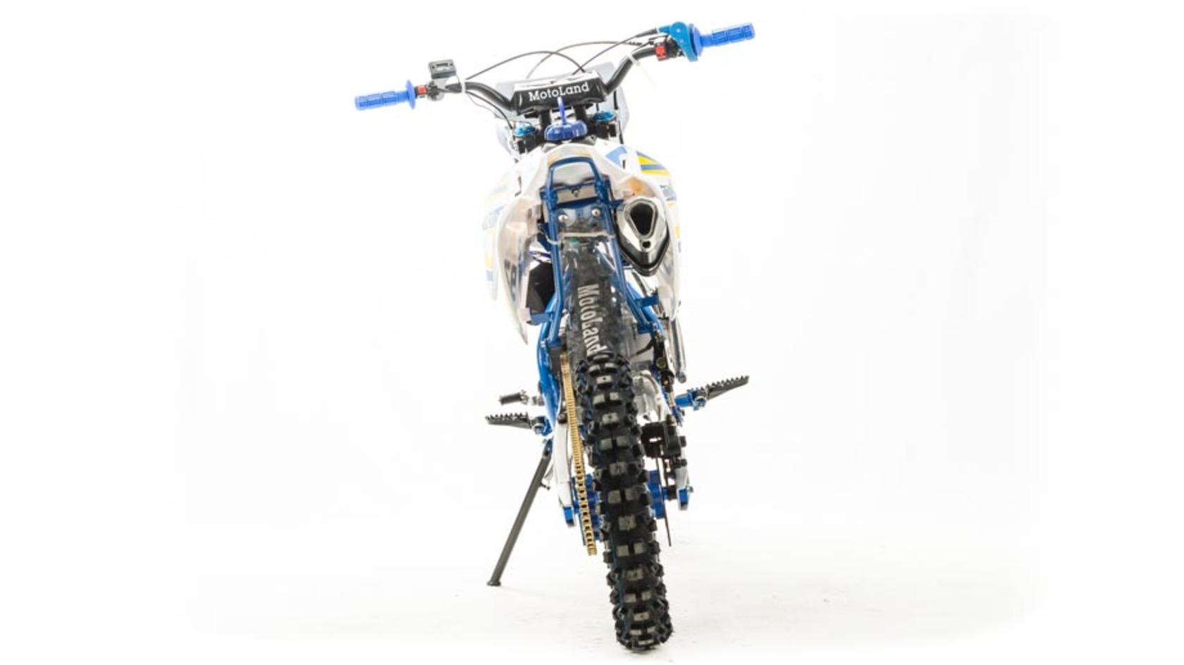 Питбайк Motoland TCX125 идеален для поездок по грунтовым дорогам и бездорожью. Хорошо чувствует себя на мягком и среднем грунте, разгоняется до 90 км/ч. Оснащён спортивными траверсами, весит всего 75 кг.Питбайк прост в управлении и не требует специального ухода, подойдёт как новичкам, так и любителям мотокросса.У питбайка отличный узнаваемый дизайн. Конструкция подчёркивает неуступчивый спортивный характер, который не остановится ни перед одним препятствием.Комбинированный прочный пластик не ломается при сгибании.Передняя подвеска — телескопическая вилка перевёрнутого типа, которая отлично подходит для преодоления ям, и других неровностей плохих дорог или их отсутствия. Задняя подвеска маятниковая с моноамортизатором.Питбайк оснащён карбюратором с фильтром нулевого сопротивления Nibbi PE n19 и одноцилиндровым четырёхтактным двигателем с воздушным охлаждением. Надёжный мотор 153FMI мощностью 8 л. с. и объемом 125 см³ , установленный на усиленной стальной раме, коробка передач механическая, четырёхступенчатая.Тормоза дисковые, передний тормозной суппорт двухпоршневой, задний — однопоршневой.Питбайк относится к недорогим моделям, которые при должной эксплуатации работают без сбоев. Не занимает много места в гараже. При необходимости в нём легко сменить любую повреждённую деталь.