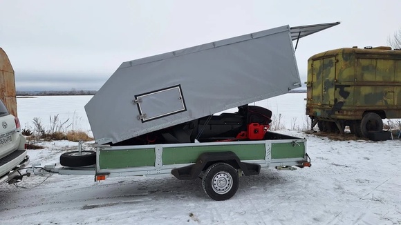 Прицеп VOYAGE Classic 3,0 Бортовой, с тентованным подъемным каркасом, окнами и задней дверью (ш. 1,5; д. 3,0)