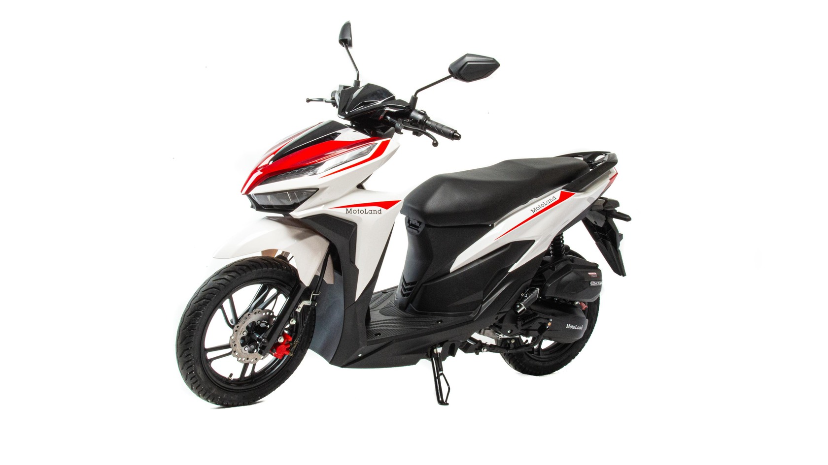 Скутер MotoLand VR 150 - это полноценная эргономичная модель из линейки двухместных скутеров, предназначенный для комфортного передвижения одному, либо вдвоем, как в городских условиях, так и при заездах на дальние расстояния.Уверенности придает мощный двигатель 157 QMK с вариатором, способным держать крейсер в 90 -100 км/ч и на обгонах разгоняться до 120 км/ч. Скутер снабдили множеством новинок: инверсионной LСD панелью приборов, иммобилайзером, выраженными современными светодиодными передними и задними фонарями, новейшей задней подвеской на моноамортизаторе, стояночным тормозом на ручке, широким комфортным сиденьем с защитным металлическим обтекателем по задней части, который в свою очередь еще выполняет функцию ручки-держателя для пассажира, увеличенными 14" колесами на литье и большими передними карманами-бардачками (кофрами). Для удобства, у замка зажигания расположена кнопка открывания бардачка. Ручки руля с грузиками. Также на скутере установлен глушитель нового дизайна, с прямоугольным диффузером и боковой защитой, передние дисковые гидравлические тормоза, усиленные откидные подножки пассажира, расширенные зеркала и большое заднее крыло под номер.